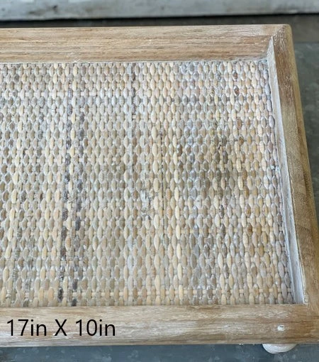 Rectangular Large Wood Tray – Turned Legs – 17in L X 10in W
