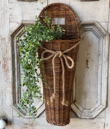 Natural Willow Wall Basket with Rope Bow